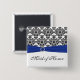 Blaues Schwarz-weißes Damast-Trauzeugin-Button Button