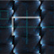 Ein blaues Schwarz-Bild, mit weißem Akzent, wurde in ein geometrisches Muster umgewandelt, das wie beleuchtete Rechtecke in diagonaler Form aussieht.