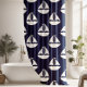 Moderner Duschvorhang mit weißem Segelboot Set auf dunkelmarineblau Hintergrund. Ideal für Ihr Ferienhaus am Strand!