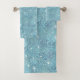 Blaues seidiges Wiederholmuster und weiße Glitzern Badhandtuch Set