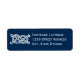 Nautische Hochzeitsknöpfe in marineblau-weißem Farbschema mit Doppelseilknot und individuellem Adresstext.