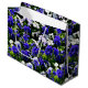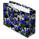 Blaues und weißes Stiefmütterchen mit grünem belaubtem Hintergrund bedeckt diese Geschenktasche mit Farbe! Koordinieren Sie mit dem gleichen einwickelnden und Seidenpapier Entwurf!