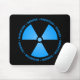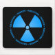 Gefahr - Strahlung - blaues Beschriftungs- und Strahlungssymbol mit einem schwarzen Hintergrund.
