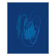 Dieses Poster besteht aus einem zentralen hellblauen Fleck, aus dem sich eine Linie entfaltet und einen ausdrucksvollen visuellen Tanz um sie herum, auf dem marineblauen Hintergrund.