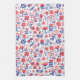 Blaues u. korallenrotes Blumenmuster Geschirrtuch
