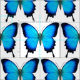 Ursprüngliches Muster der feinen Kunst der exotischen blauen Ulysses-Frackschmetterlinge durch Naturkünstler Carolyn McFann zwei des schnurrenden Katzen-Studios druckte auf QualitätsBaumwollgewebe. Groß für das Steppen und das Nähen projektiert für Schmetterlingsfans!