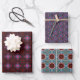 3 verschiedene koordinierende abstrakte geometrische Designs in Blau, Rot und Rosa.