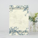 Briefpapier mit empfindlichen blühenden Bäumen und Vögel, Blau und Beige.
