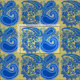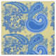 Traditionell und gleichzeitig modern. Glänzendes blaues Muster von Paisley und von Blumen auf einem Hintergrund des goldenen Gelbs.