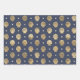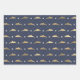 Blaue und goldene Segel-Geschenkpackung mit Delphinen, Muscheln und Seepferden in Perlgittermustern.