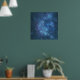 Eine grafische Darstellung des Raumes in dunkler und heller Blues und in scheußigen Pärchen. Eine künstlerische Interpretation der Weite des Weltraums mit Sternen, Wolken, Nebel und Galaxien, die den fernen Weltraum mit einer traumhaften Atmosphäre leuchten und erhellen.