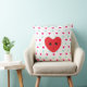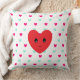 Niedliches hellblaues und magentafarbenes Herzmuster auf weißem Kissen. Ein großes rotes glückliches Herz ist auf der Vorderseite. Das rote Herzbild kann angepasst werden.