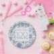 Schönes und Freiheit HippieVintages blaues Blumenmuster auf blassem Hintergrund. Papierplatte des hoch entwickelten und weiblichen 100. Geburtstags-Party mit kundengerechten Texten auf transparenten Quadraten. Sie können Texte (Schriftart, Größe, Farbe und Position) leicht ändern und entwerfen (Größe und Position). Zusammenpassende Produkte für Geburtstags-Party: Papierserviette, danke, Kasten… und Geburtstagsgeschenk mit Monogramm zu beehren: Tasse, Gepäck, Gepäckumbau, Kissen, Hüllen und mehr… Vergessen Sie nicht die ganze Sammlung der Vintagen Blumenmuster für Geburtstag.