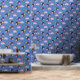 Blaues Vogelgeflecht und Regenbogenmuster Tapete