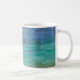 Genießen Sie einen dämpfenden Tasse Kaffee mit den Farben des Ozeans in Ihnen Hand.