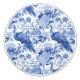 Ein wunderschönes chinoiserie inspiriertes Muster von Blume und Pfauen in blau und weiß.