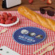 Navy Blau und Kontrast hellen Himmel blau und weiß doppelseitig 99. Geburtstag Teller. Grafische Einladung passen sich mit Ihren eigenen Details und drei Fotos Ihres Geburtstagsmädchens oder Jungen. Einzigartiges Design von Sarah Trett für www.mylittleeden.com