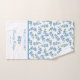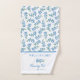 Schönes Handtuch in Blau und Weiß mit einem Blumenmuster von vergisst-me-not-Blume. Fügen Sie auch Familiennamen in eleganten blauen Buchstaben hinzu.