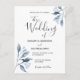 Eine einfache, trendige Hochzeitseinladung in weiß, silberblau und klassisch blau. Ein schick weißer Hintergrund auf der Vorderseite. Dekoriert mit botanisch silberblauen Ästen und Blattwerk. Moderne, große handhabete Schrift, Typografie mit dem Text: Die Hochzeit von. Vorlagen für Namen und Hochzeitsdetails. Dunkelgrauer Text. Zurück: weißer Hintergrund. Tipp: Wenn Sie es nicht so gewollt haben, dass es wie eine Postkarte aussieht, klicken Sie auf Anpassen, gehen Sie auf die Rückseite und entfernen Sie den Trenner und posten Sie die Briefmarke.