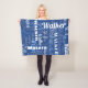 Blue White Medium Length Name Pattern Typografie Baby Blanket - Diese kuschelige Babydecke ist mit einem blauen Hintergrund in Weiß-, Blues- und Grautönen mit dem Namen Ihres Babys in einem modernen und trendigen Typografie-Muster verschiedener Schriftart ausgestattet. Gutes Geschenk für das neue Baby oder als Babydusche Geschenk! Diese Decke enthält mittellange Namen, und es gibt auch Stile für kurze oder lange Namen.