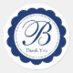Blaues weißes Scallope Circle Monogramm Runder Aufkleber