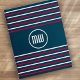 Blaues weißes Streifen Nautic Monogram Notizbuch