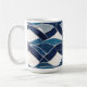 Blauweißes Wellenmuster 01. Ein kompliziertes Muster in Blau und Weiß, das an die Schönheit der Mittelmeerküste erinnert. Das wellenförmige Design fließt anmutig und erinnert an die rhythmische Bewegung des Meeres. Diese Komposition spiegelt das Wesen des Meeres mit seinem ruhigen und zeitlosen Reiz, der die Küstenlandschaft widerspiegelt.