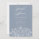 Elegant, modern und naturgetreu inspiriert - diese Brautdusche lädt mit einem weichen, staubblauen Hintergrund, zarten Konturen mit weißer Wildblume und elegantem, weißem Drehbuch zum Verweilen ein. Ideal für Frühlings-, Sommer- oder Herbst-Brautpartys mit einem staubigen blauen Thema, Party im Garten oder rustikalen bohenhaften Charme. Ideal für einen Brunch im Freien oder in einem gemütlichen Hinterhof. ✨ individuell anpassbar | Boho Floral | Garden Brautparty 🎨 Ästhetik: Dusty Blue, Rustikal, Minimalistisch, Whimsical 🌸 Perfekt für Sommer oder Herbst Brautparty, Outdoor-Ansammlungen, Boho Braun
