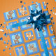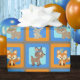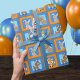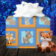 Blue Wild One Woodland Animals Wrapping Paper - Fox, Deer, Bar und Bunny in Blue, Orange und Brown Clipart von Pixel Paper Prints