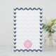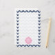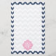 Briefpapierpapier, das einen blaues ikat Zickzack Entwurf kennzeichnet. Personifizieren Sie mit Ihrem Monogramm über rosa quatrefoil Entwurf.