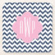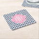 Blaues Zickzack Ikat Monogramm Rechteckiger Pappuntersetzer