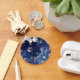 Eine blaue Galaxie mit einer Mischung aus mehreren Fraktal-Kugeln in phantastischen Farben, die Planeten darstellen, die in der blauen Galaxie aufgehängt und von Sternen umgeben sind