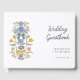 Boho und rustikale Bogen Thema Hochzeit Gästebuch mit handgezeichneter Illustration von blau gelben Band mit Blume.