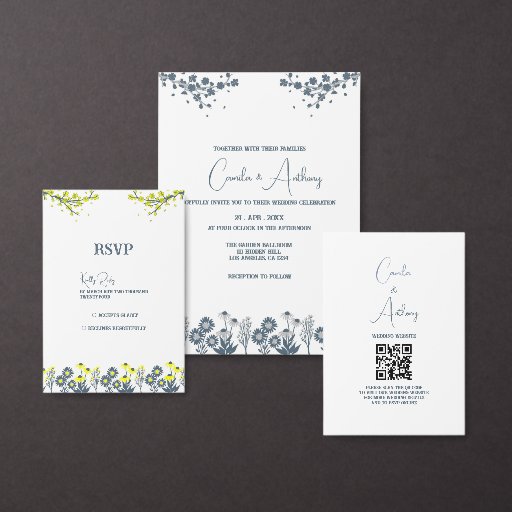 Blue Yellow Wildflower Floral Boho WeddingDesignt von Dia Sha