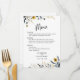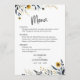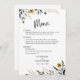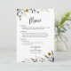 Blaugelbe Wildblumen Hochzeitsmenü Menükarte