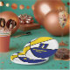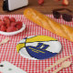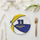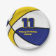 Diese Basketball-Party-Platte für einen Basketball-Geburtstag oder ein Team-Party zeigt das Bild eines Basketballs mit abwechselnden blauen, weißen und goldfarbenen Panels - den Text in Blau und Gold - von katz_d_zynes