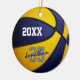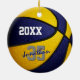 Dieser Basketballverzierung für Jungen und Mädchen ist ein realistisch aussehender Basketball mit abwechselnd blauen und goldfarbenen Tafeln - personalisieren Sie die Vorder- und Rückseite des Ornaments mit Jahr und Spielernamen in einem Schriftart im "Autogramm"-Stil, der über der Jerseynummer des Athleten liegt - von katz_d_zynes