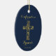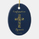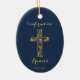 Moderne Bestätigung Gold Kreuzname Verzierung mit einem blauen Hintergrund. Personalisieren Sie mit Ihrem Namen und Datum.