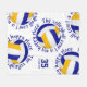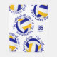 Dieses lustige Volleyball-Flittertuch enthält 5 zufällig platzierte blau-, gold- und weiße Volleybälle mit dem Text "Der Volleyballplatz ist mein Happy Place" in blau, die jeden Volleyball in einem coolen typografischen Schriftart umkreisen, alles auf weißem Hintergrund - ihr Name und ihre Trikotnummer sind individuell einstellbar - von katz_d_d_zynes