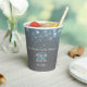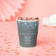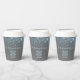 Personalisieren Sie diese grauen aqua blauen Blasen Hochzeitspapiere Becher mit den Namen Ihres eigenen Paares und das Hochzeitsdatum oder das Veranstaltungsdatum. Ideal für einen Champagner-Toast im Freien oder für Party-Drinks oder um Konfetti oder Blasen-Gemisch in sich zu halten. © Original design by Sarah Trett for www.mylittleedenweddings.com