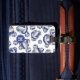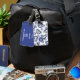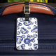 Dieses Gepäckanhänger mit dem Thema Volleyball weist ein zufälliges Muster von Volleybällen unterschiedlicher Größe auf, die mit blauen, grauen und weißen Paneelen auf weißem Hintergrund versehen sind - mit Monogramm auf der Vorderseite personalisieren, Adressdaten auf der Rückseite - die blau-grauen und blauen Paneele der Volleybälle erscheinen durch ein mädchenes, künstlerisches, blumenförmiges Muster - von katz_d_d_zynes