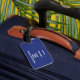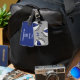 Dieses Basketball-Gepäcksack-Anhänger wurde einfach mit drei zufällig angeordneten Basketballbällen entworfen, die abwechselnd blau, weiß und grau lackiert sind - personalisieren Sie den Spielernamen und das Monogramm auf der Vorderseite, Adressdaten auf der Rückseite - von katz_d_zynes