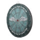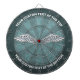 Weite offene blaugraue Flügel Illustration. Muddy blauer Hintergrund. Zwei benutzerdefinierte Textbereiche.