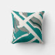 Das Motiv ist diagonal geschliffen, zeitgenössisch, abstrakt und besteht aus fett-geometrischen Formen und Linien in Weiß und Grau, mit dunklen aquamarinen Elementen, auf einem aquamarin blau-grünen Hintergrund. Inspiriert durch klassisches mediterranes und modernes Design. Dies ist ein modernes Kunstwerk mit einem raffinierten, kühnen Look. Der diagonale Saum schafft ein Gefühl der Bewegung und Aktivität der Flüssigkeit, wie z.B. im Tanz. Das künstlerische Design schafft ein lebendiges, glänzendes, aber helles und komfortables Ambiente für Wohnbereich, Schlafzimmer, Arbeitsbereich, Terrasse oder Innendekoration und bietet ein Gefühl von Wärme und Entspannung. Das Dekorationspotenzial dieses Akzenten, das in zahlreiche Stile (innovativ bis traditionell) passt, von Retro/Vintag über Bauernhaus bis hin zu modernem Ranch-Stil, rustikale Hacienda, urbanes Loft und Hochhaus.