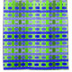 Dieser Duschvorhang ist blau-grün kariert auf einem weißen Feld.