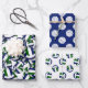 Diese spaßigen Packpapierblätter für Volleyballspieler oder Fans haben drei individuelle Muster — Blatt 1 weist ein 3D-Look aus, das blaue, grüne und weiße Paneele hat - Blatt 2 hat einfache weiße Volleyballformen auf anpassbarem Blau - Blatt 3 hat ein einfaches Spiegelmuster von blauen, grünen und weißen Volleybällen auf individualisierbarem Weiß - von katz_d_zynes