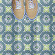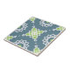 Elegantes Keramik-Fliesen-Design mit einem nahtlosen Muster aus geometrischen Formen in grün und weiß auf blauem Hintergrund.