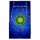 Ein rotationsähnliches Fraktal, das der gefärbte Krawatte der 60er Jahre ähnelt; mehrfarbig mit Blues und gelb dominiert. Fügen Sie Ihren eigenen Text hinzu.
