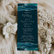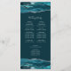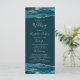 Dieses elegante, moderne Hochzeitsprogramm verfügt über blaugrüne Wasserfarbe-Achat-Ober- und -Untergrenzen, die mit silbernem falschen Glitter besetzt sind. Der Text erscheint in eleganter silbergrauer Handschrift und Kupferstich-Schriftarten auf einem tiefen Blaugrün-Hintergrund.