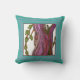 Blaugrünes stilisiertes Bild von Bäumen und Vögeln Kissen